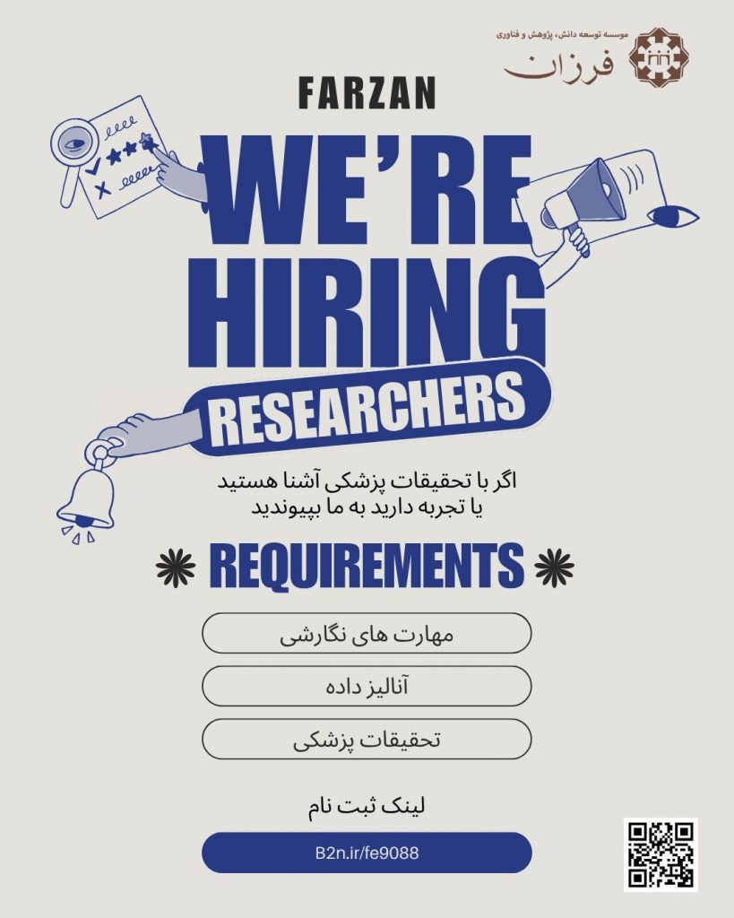 اگر دانشجو یا فارغ‌التحصیل یکی از رشته‌های علوم پزشکی یا حوزه‌های مرتبط هستید و با روش های تحقیق، آنالیز، نگارش و … آشنایی یا تجربه دارید، فرصت خوبی برای همکاری
